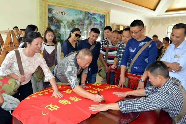 培训班学员在培训班的班旗上签名(周晓冬摄)