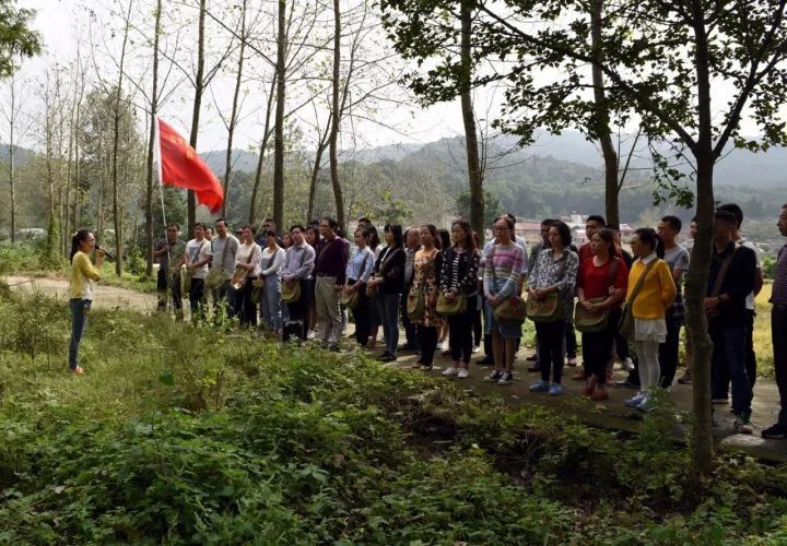 学员举旗行进在当年的柴山保革命根据地内(秦紫依摄)