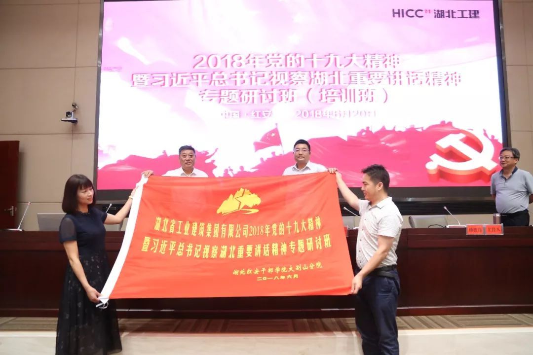 2018年6月22日上午,湖北工建2018年党的十九大精神暨习近平总书记视察湖北重要讲话精神专题研讨班(培训班)结业仪式在湖北红安干部学院举行,160名学员经过2.5天的集中培训全部顺利结业。