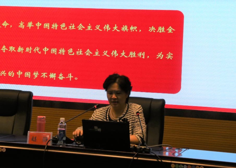 湖北省委党校教授赵静以《新时代的政治宣言和行动纲领》对党的十九大精神进行深度解读。她从十九大的主题和主要成果、十九大的主要精神和核心内容、习近平新时代中国特色社会主义思想的时代背景、主要内容和重大意义等方面进行了讲解。