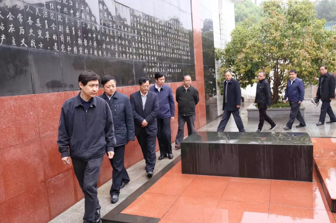 4月7日,中国人民解放军东部战区陆军司令员秦卫江一行,黄冈市委常委、红安县委书记余学武、红安县革命纪念地管理中心主任陈敦学来黄麻纪念园祭扫陪同。