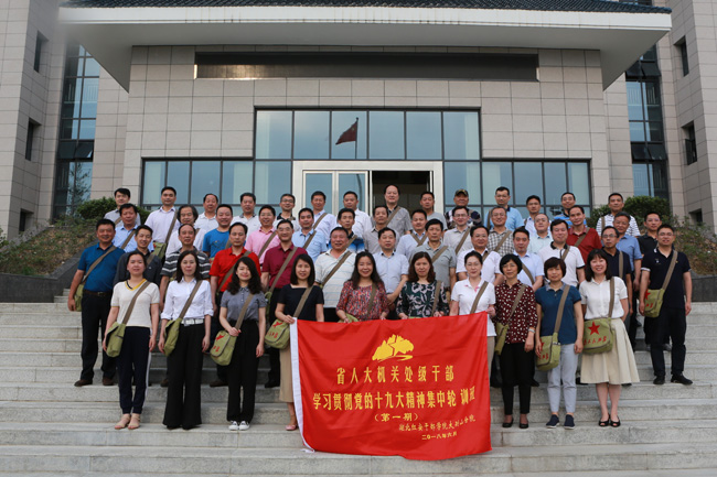 2018年6月4至8日 ,我院迎来了省人大机关处级干部学习贯彻党的十九大精神集中轮训班的学员。省人大机关50余名处级干部参加为期一周的集中培训,主要任务是坚持以习近平新时代中国特色社会主义思想为指引,围绕学习贯彻党的十九大精神和习近平总书记视察湖北重要讲话,开展培训研讨,分析新形势、聚焦新任务、把握新要求,不断开创我省人大工作新局面,为推动我省经济社会发展贡献人大力量。
