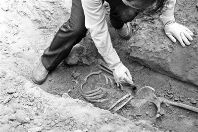 邹开胜烈士是腹部中弹牺牲的,他的遗骸出土时,手臂正放在肚子上