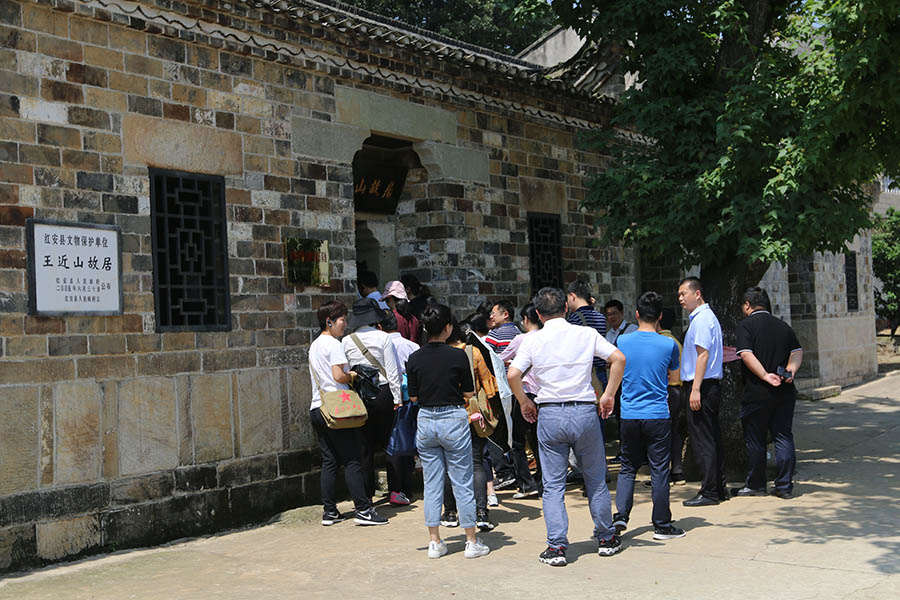 教学第三站是王近山和李先念故居。王近山和李先念故居都是很普通的土砖瓦房。李先念故居旁有一座依山而建的李先念纪念馆。大家观看了李先念生前使用过的简朴生活用品、照片和实物资料,观看了教育短片《大爱》,深切缅怀李先念从一名农民的儿子成长为国家主席的光辉历程。