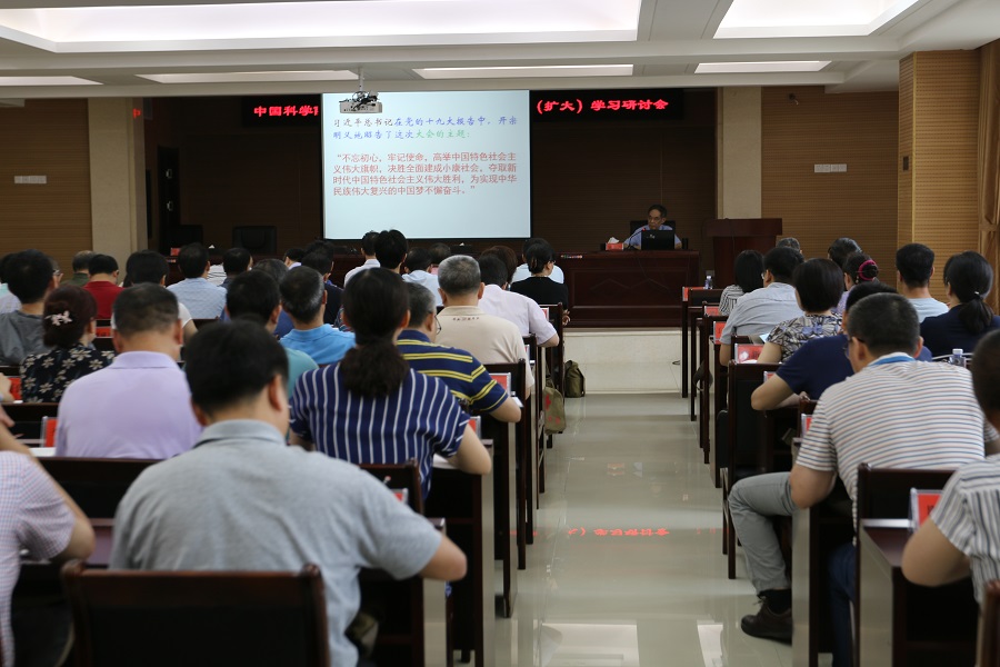 2019年7月21-23日,中科院武汉分院分党组召开2019年度中心组(扩大)学习研讨会,专题开展“不忘初心 牢记使命“主题教育集中学习。武汉分院系统各单位领导班子成员、党委委员、所长助理、机关职能部门主要负责人近90人参加了集中学习。武汉分院院长袁志明,分党组书记、副院长李海波分别主持会议。