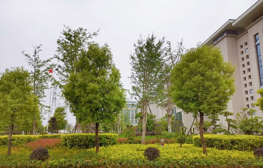 此次改造提升面积近万平方米,补植了国槐、金品桂花、柚子树、山茶花 、紫薇、满天星 、爬山虎等苗木20万株,乔灌草错落有致,色带色块整齐美观,春有花、夏有荫、秋有果、冬有景,让院景更美丽、环境更优雅。