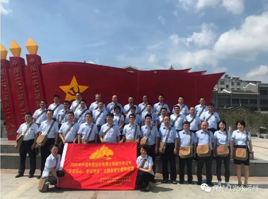 2020年8月14日-15日,2020年中国电信股份有限公司咸宁分公司“不忘初心、牢记使命”主题教育专题研修班在我院成功举办,来自中国电信股份有限公司咸宁分公司领导班子共35名成员参加了本次培训。