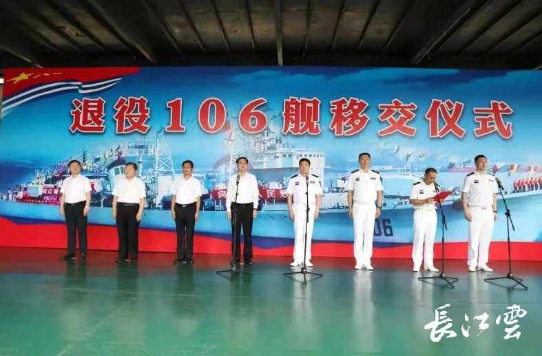 7月20日上午,退役106号驱逐舰交接仪式在武汉港码头举行,正式移交给黄麻起义和鄂豫皖苏区纪念园。海军工程大学政委孙忠义、市委书记张家胜出席交接仪式并讲话。