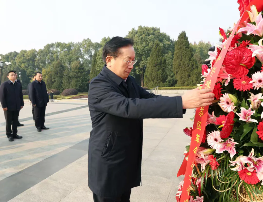 黄麻起义和鄂豫皖苏区纪念园,苍松翠柏挺立,气氛庄严肃穆。王忠林、李殿勋先后缓步上前,向革命烈士纪念碑敬献花篮,仔细整理缎带,深深三鞠躬并深情瞻仰纪念碑。随后,王忠林、李殿勋走进革命历史纪念馆,通过一张张历史图片、一件件文献实物、一个个场景展示,详细了解黄麻起义经过和鄂豫皖革命根据地开展革命、发展壮大的历史。王忠林动情地说,红安我来过多次,每来一次,都很受激励、很受鼓舞。红安是黄麻起义的策源地、鄂豫皖革命根据地的中心、人民军队的重要诞生地,孕育了“万众一心、紧跟党走、朴诚勇毅、不胜不休”的红安精神。全省广大党员干部要牢记习近平总书记殷殷嘱托,弘扬优良传统,赓续红色血脉,努力创造不负革命先辈、无愧于历史和人民的新业绩。要铸牢忠诚之魂,牢记对党忠诚是共产党人的首要政治品质,更加自觉坚定拥护“两个确立”、坚决做到“两个维护”,始终在思想上政治上行动上同以习近平同志为核心的党中央保持高度一致。要走好改革创新之路,牢记改革只有进行时、没有完成时,敢闯敢试、敢于打破条条框框,不断深化各领域改革,以改革突破引领发展突围。要走好新时代党的群众路线,牢记江山就是人民、人民就是江山,始终把人民放在心中最高位置,实现好、维护好、发展好最广大人民根本利益,让人民群众获得感成色更足、幸福感更可持续、安全感更有保障。要恪守廉洁勤政之风,坚决落实全面从严治党政治责任,严格遵守廉洁自律各项规定,永葆清正廉洁的政治本色。要大力弘扬红色文化,深入挖掘红色资源,讲好红色故事,传承红色基因,奋力走好新时代的长征路。